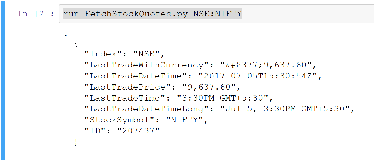 Python Script to fetch Live Stock Quotes Published July 5, 2017 at 1293 × 554 in Python Script to fetch Live Stock Quotes from Google Finance Python Script to fetch Live Stock Quotes Related Posts Previous Next
